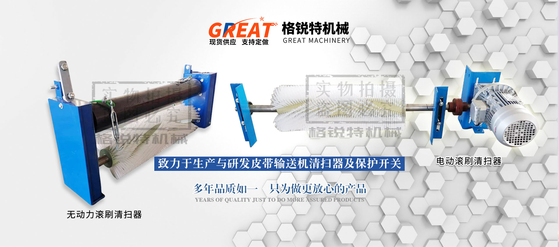 衡水格銳特機(jī)械科技有限公司常年致力于生產(chǎn)與研發(fā)皮帶輸送機(jī)清掃器及保護(hù)開關(guān),其中主營(yíng)聚氨酯清掃器,合金清掃器,電動(dòng)滾刷清掃器,機(jī)械式滾刷清掃器,緩沖床,緩沖條,雙向拉繩開關(guān),兩級(jí)跑偏開關(guān),打滑檢測(cè)器,料流檢測(cè)器等保護(hù)開關(guān),常年銷往各大水泥廠,煤礦廠,電廠,輸送機(jī)廠家,質(zhì)量?jī)?yōu)越,價(jià)格實(shí)惠,望各大領(lǐng)導(dǎo)及同行來(lái)廠參觀指導(dǎo),期待您的光臨!!!